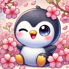 桜とペンギンをテーマにしたかわいいスタンプセットです。楽しい会話にぴったりです!