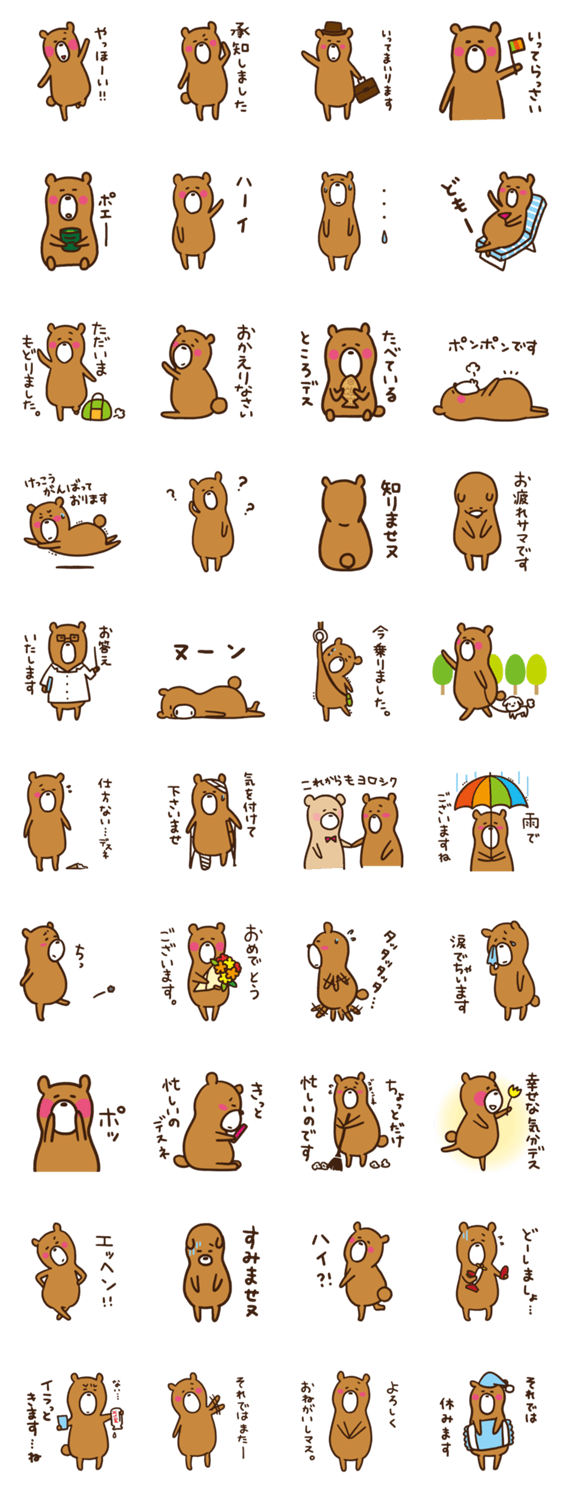 スタンプ説明 ゆるーいクマがあなたの日常会話を盛り上げてくれます。何だか憎めない表情に癒されて下さい。