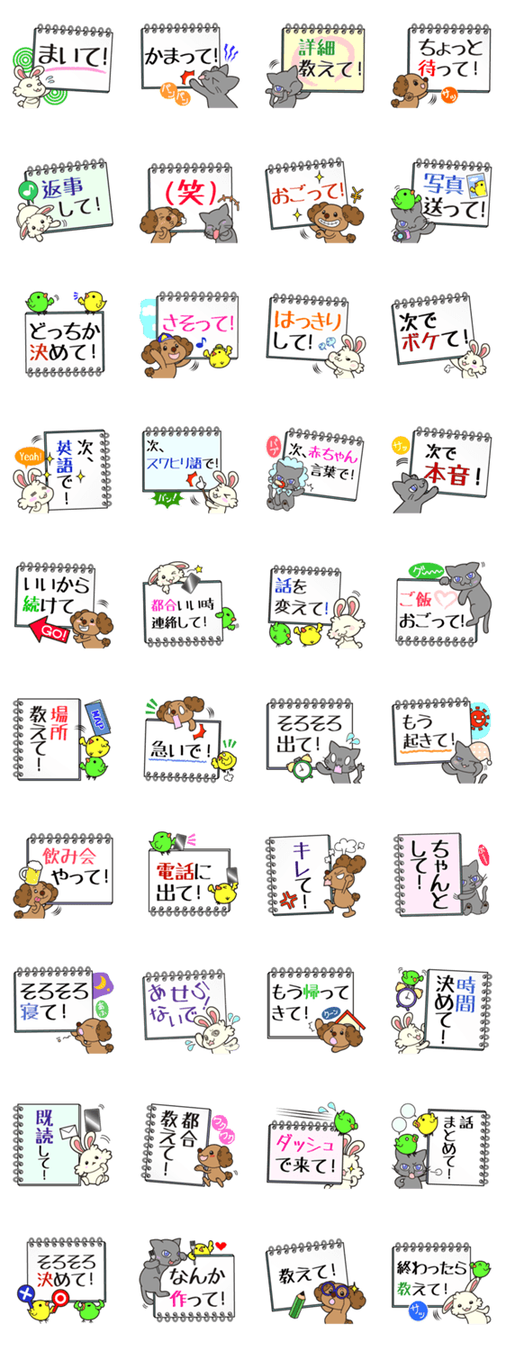 スタンプ説明 カンペで指示だし!相手にやってほしいことを伝えやすいスタンプです