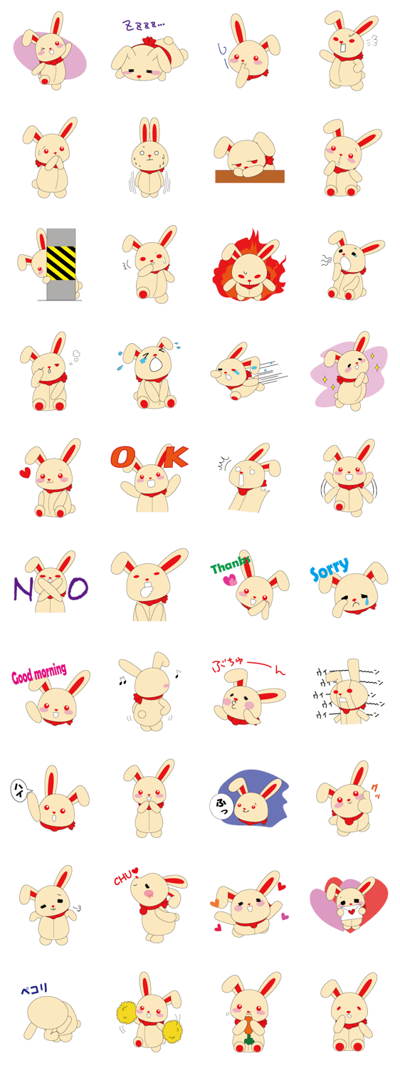 スタンプ説明 かわいいうさぎの「ラビーちゃん」。愛らしい姿でLINEを盛りあげます。