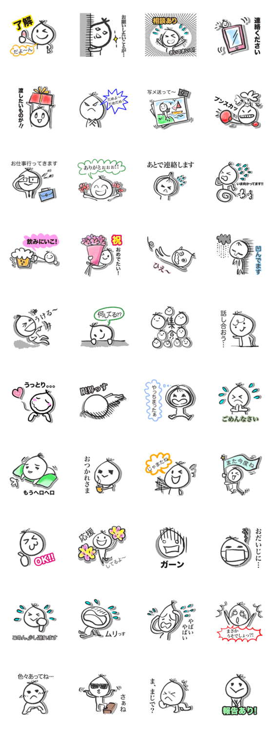 スタンプ説明 どこか笑えるラッキョくん(^O^)/日常会話でよく使う言葉を盛り込んでます。スタンプだけで気持ち伝えられるので楽チンで〜〜〜す!!!