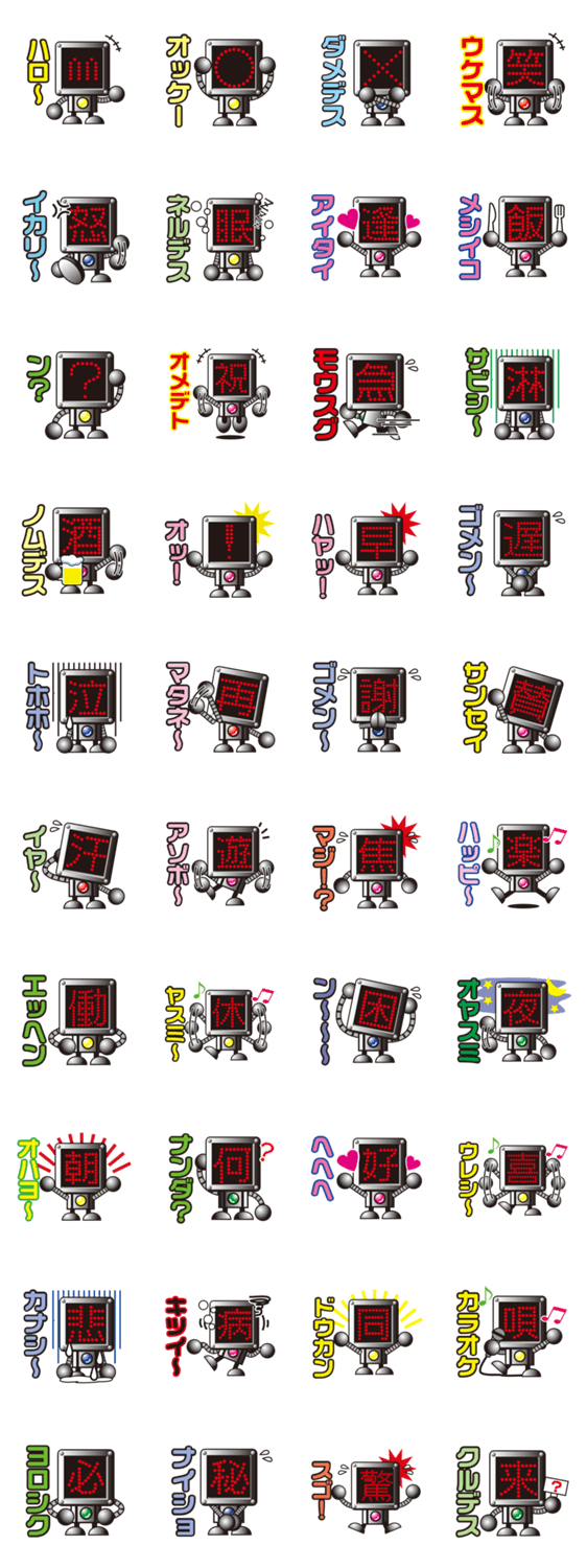 スタンプ説明 漢字一文字しか表示できないロボットですが、頑張ってコミュニケーションのお手伝いいたします!