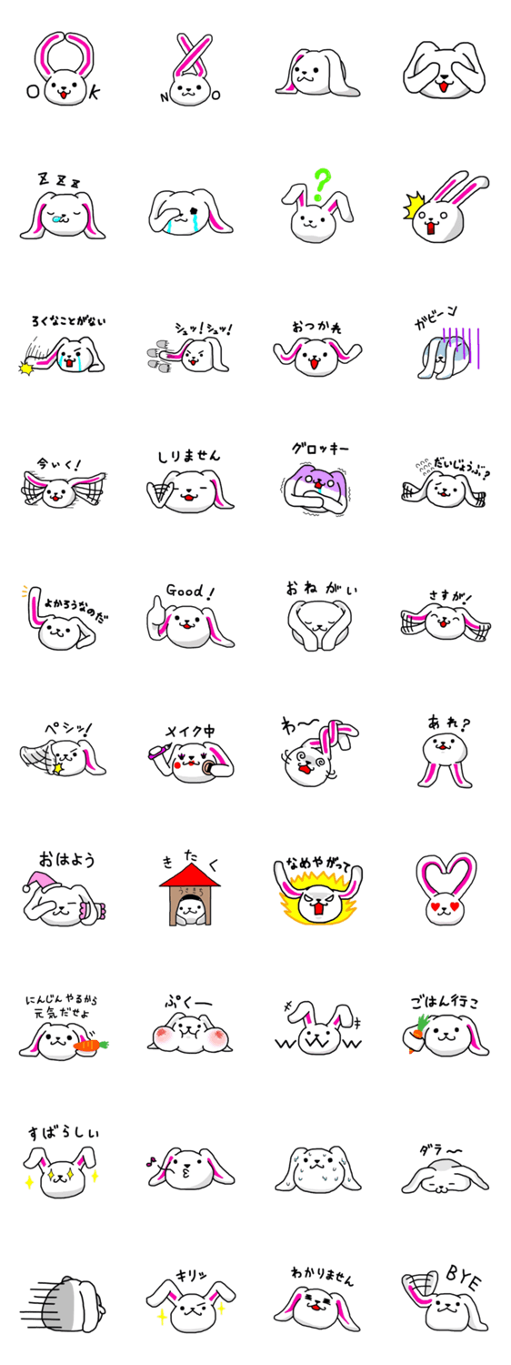 スタンプ説明 まるくて可愛い耳長うさぎ