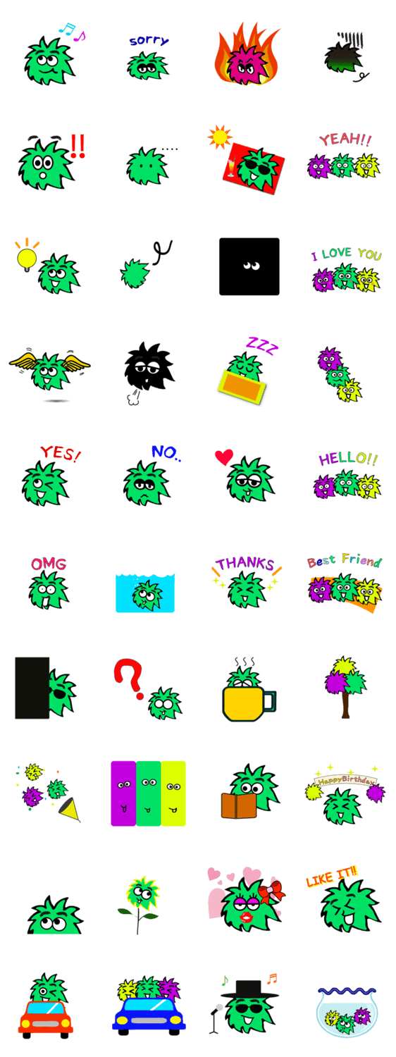 スタンプ説明 ちょっぴりキモイ?だけど愛らしいまりも君。日常で使いやすいキーワードと可愛らしい動作で送った相手もヤミツキ間違いなしです。