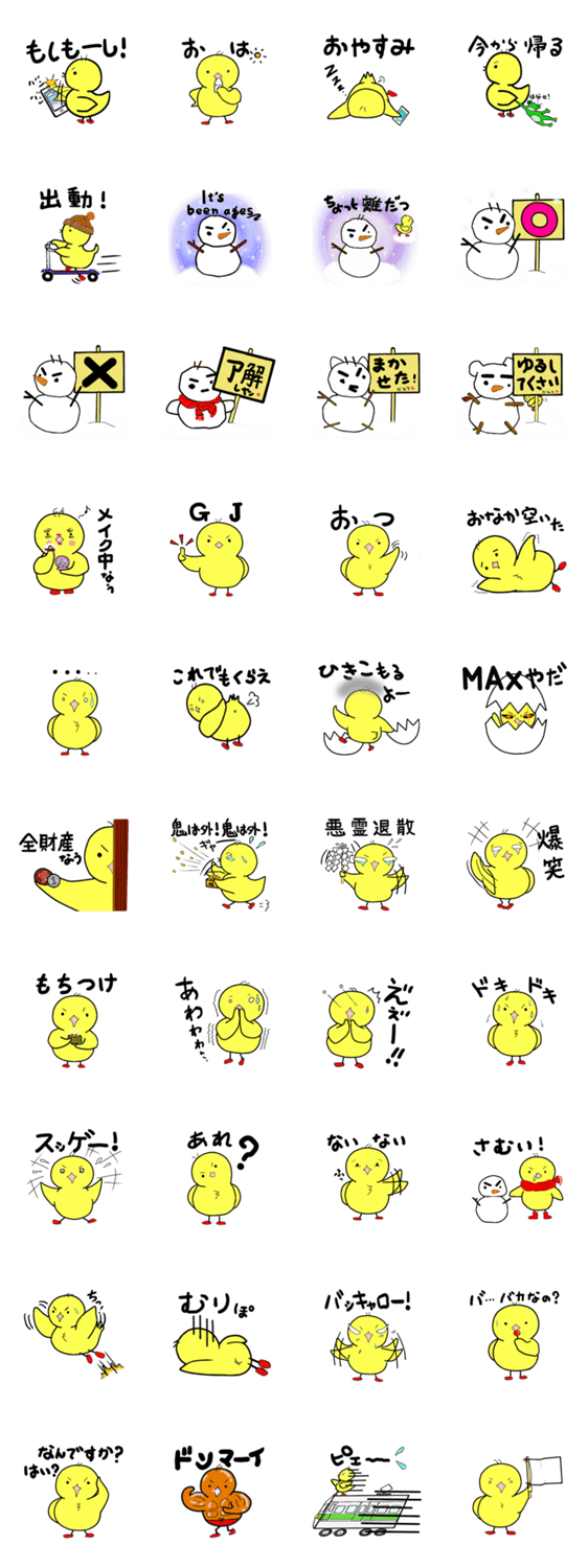 スタンプ説明 可愛いだけじゃ この世の中生きていけないんだよー。とっ言うわけで『媚びないヒヨコ④』カキしました。可愛いけどブラックな方用スタンプ