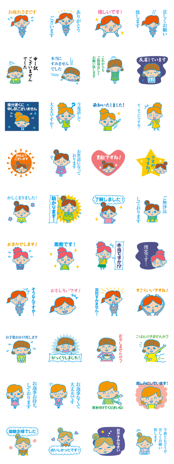 スタンプ説明 目上の人、友だち、知り合い、会社、サークル、仕事、仲間、同僚、ママ友などお世話になってる人へ日常会話やビジネス、頼み事、お詫び、謝罪、お誘い、感謝をていねいに。