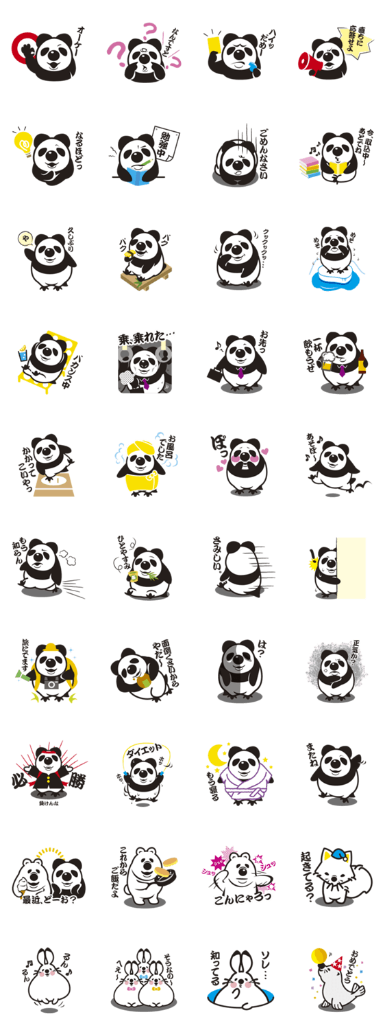 スタンプ説明 お父さんパンダとお母さんペンギンから生まれた北極パンダ。もちろん、生まれも育ちも北極で楽しい友達がたくさんいるよ。みんなも北極パンダと友達になろう!!