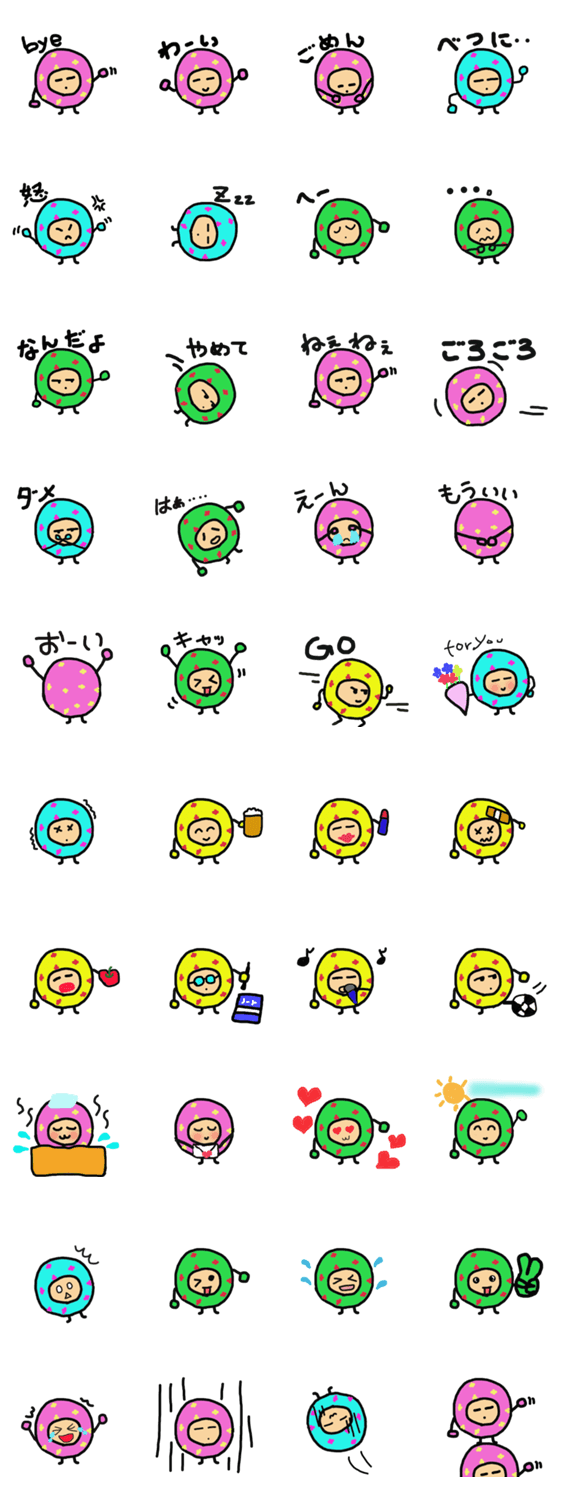 スタンプ説明 カラフルなまん丸キャラがトークを盛り上げてくれるよ♡