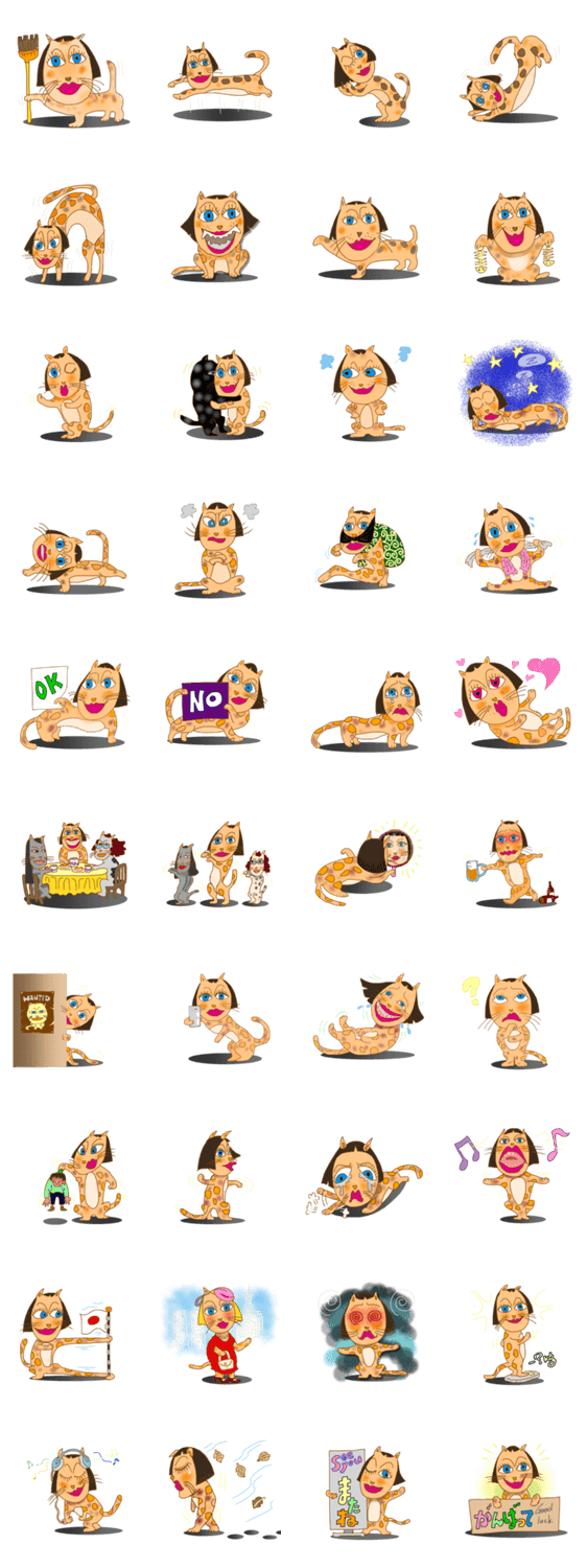 スタンプ説明 私の名前は「まりネコ」見た目は強いメス猫に見えるけど、実は結構涙もろかったり弱かったりするんですよ。お友達になってくださいね。