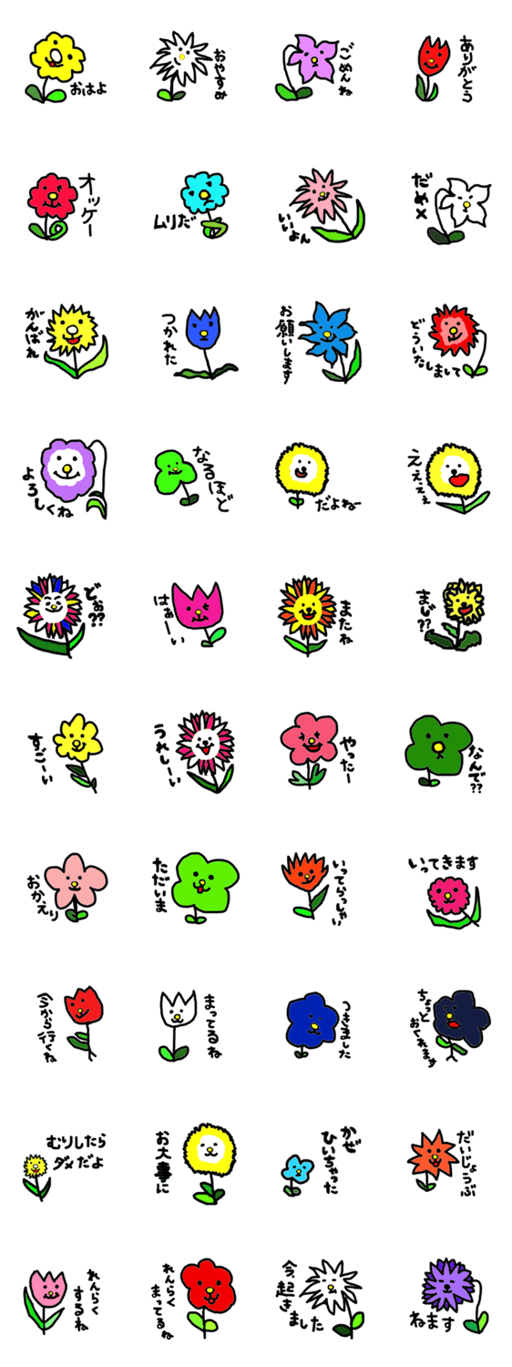 スタンプ説明 ゆるーいお花のお絵かきスタンプ