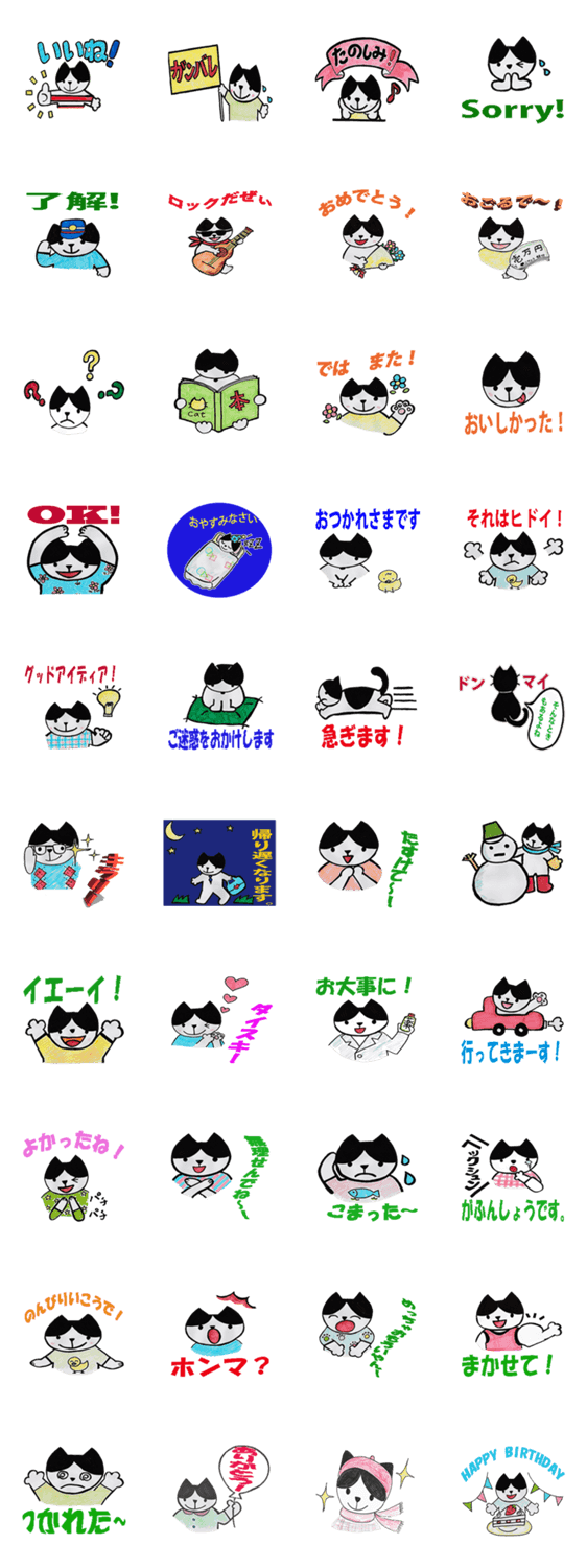 スタンプ説明 泣いたり笑ったり怒ったり…。あなたの波瀾万丈な毎日をかわいいハチワレの猫ちゃんが表現してくれます。大変なことがあっても思わず笑ってしまうようなすたんぷです。