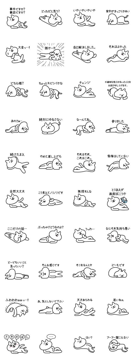 スタンプ説明 猫第4弾。だらだらねころび怠けるうざいネコ。お正月は家でゴロゴロな猫。やる気が出ない動きたくないだるい時、どうでもいい事件事故・自己解決・ティッシュ出す時に。