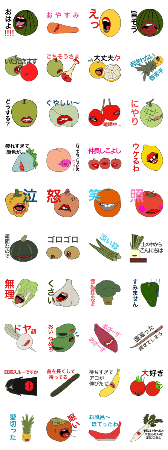 スタンプ説明 新鮮野菜達が日常会話を楽しくしてくれます