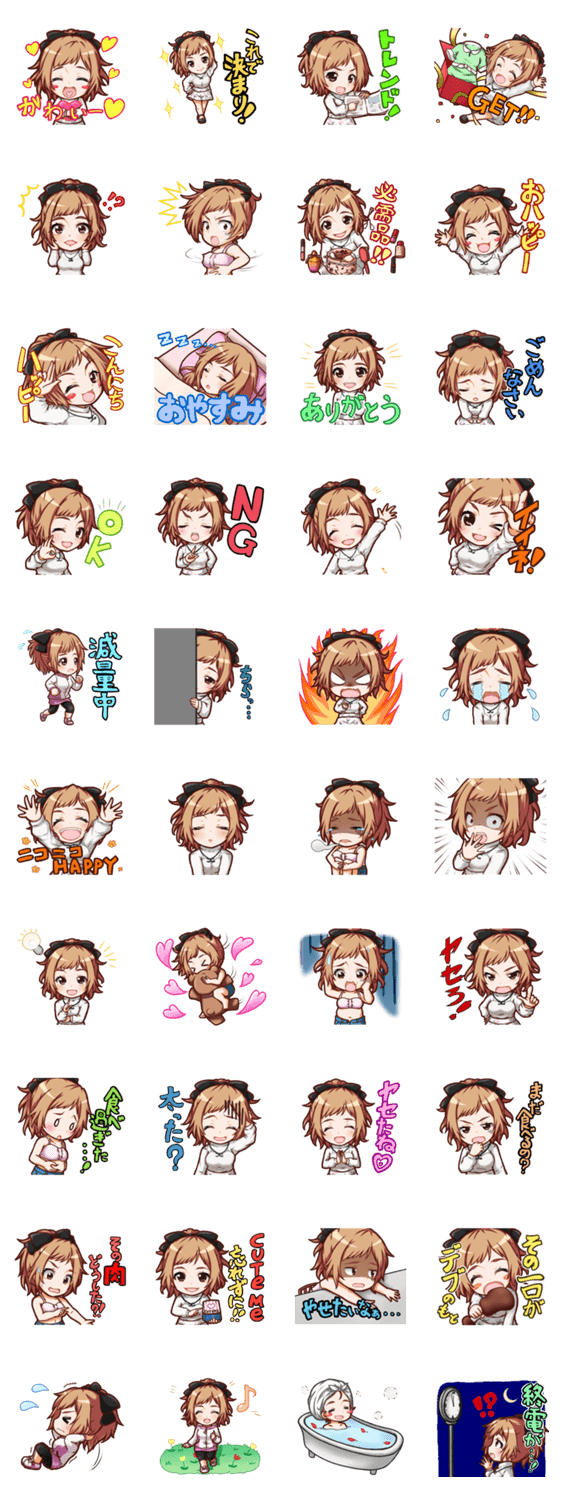 スタンプ説明 カリスマブロガーあいにゃんのコミカルなスタンプの登場だにゃん(^ω^)♥プロデュースのキュートミーで今日もダイエット!