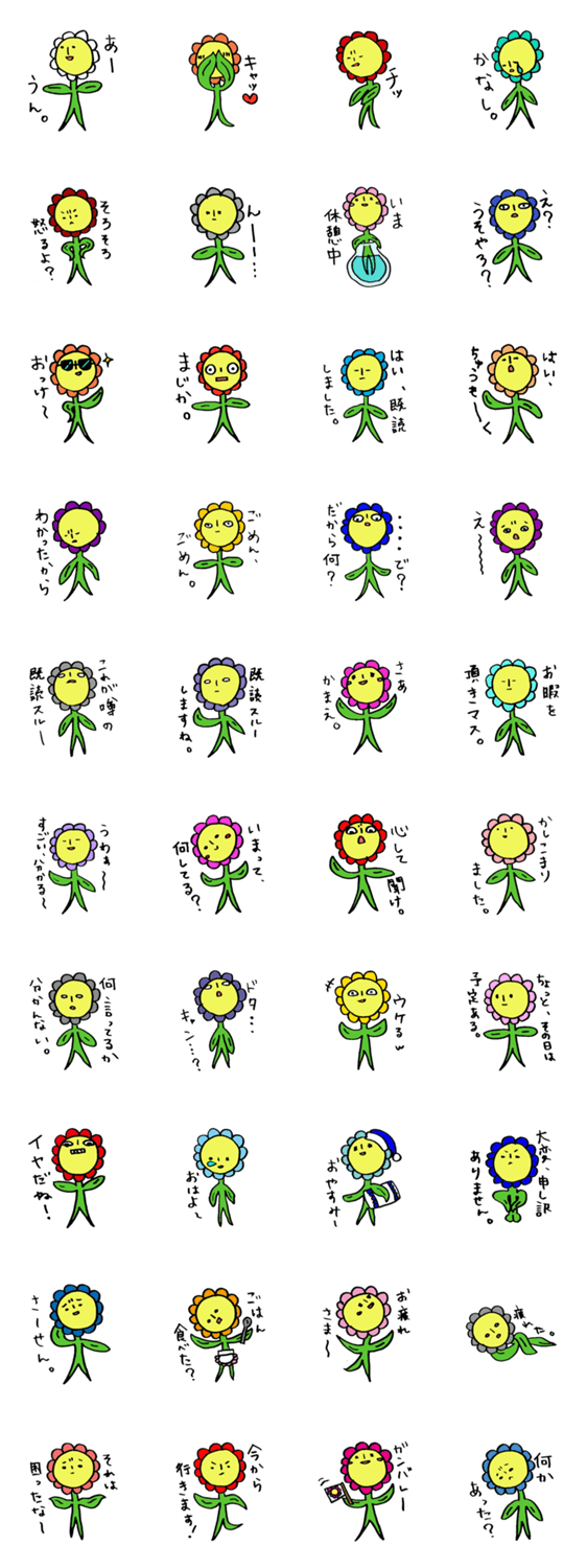 スタンプ説明 お花をモチーフに、会話に使えるものを作りました。