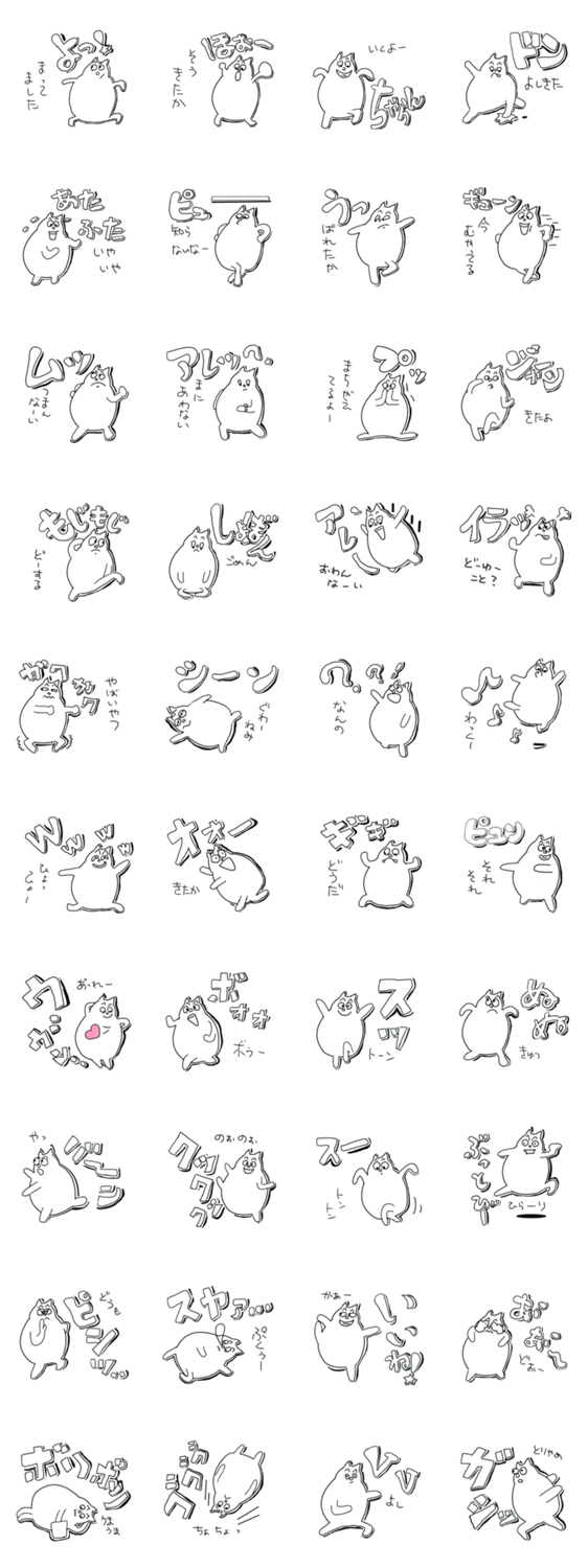 スタンプ説明 なまけもののぷるぷる体型の愛らしいねこが、日常会話で楽しませてくれるスタンプです。