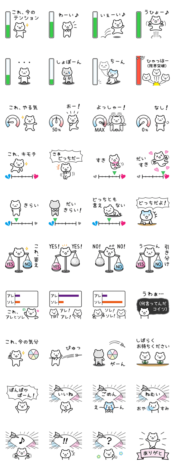 スタンプ説明 メーターやグラフなどで相手に気持ちを(詳しく)伝えるしろくまです。