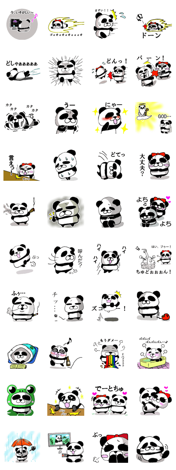 スタンプ説明 愛くるしいおデブパンダのスタンプ。パンパンのお腹が売り。第五弾できました~!今回はちょっとシュールな面も見せてるパンダちゃんですwww