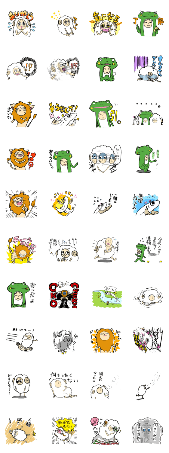 スタンプ説明 生きる闇などを題材にしたコミカル四コマ漫画「迷える子羊」のスタンプ、日常リアクションand闇バージョンです!