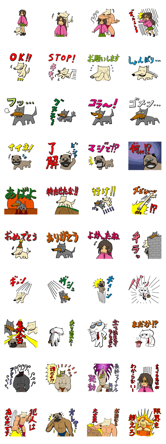 スタンプ説明 あの迷犬ワンダスチンが帰って来た!!大好きな飼い主モモコちゃん、宿敵と書いて"とも"と読むドーベルワンの新キャラに加え親友パグ丸とネコ課長も健在。レッツスタンプ!!