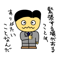 スタンプ説明 優柔不断で、マイペースなサラリーマン!気は小さいけど優しい!シャイガイ!たまに豹変してしまう!?お友達にメッセージを送るときにたっくんをお役立てください。