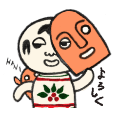 スタンプ説明 はにわの手を宿したこけし、ハニコケです。ほんわか、シュールな表情であなたのキモチを伝えます。消しゴムハンコで作りました。