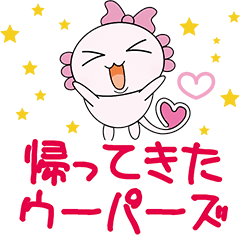 スタンプ説明 ポップでキュートなゆるカワ“スタンプ”で人気を博した「ウーパーあつえ」が帰って来た♪ これを見て、 懐かしー❤ っと思った人←ありがとう!! ちょっと動いてみたよ!