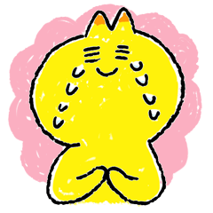 スタンプ説明 幸せを呼ぶ黄色いネコ・ペーロが、あなたとお友だちを応援します! 前向きでハッピーなポジティブスタンプでニャンだふるライフを!