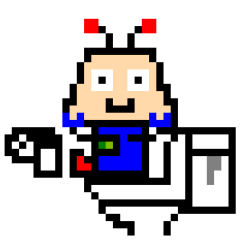 スタンプ説明 大阪の十三にあるanimebarSUPERTOMOCOで マスコットキャラのプリン星人がドット絵スタンプで誕生!