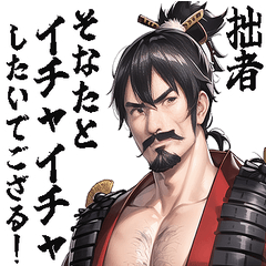 スタンプ説明 渋いけどどこかウザい侍のスタンプです。武士語,時代劇,同心,和服,着物,サムライ,Samurai,ロン毛,イケメン,イケオジ,ダンディ,髭,戦国,ビール,酒,煽り,江戸,ヒゲ,男,ござる