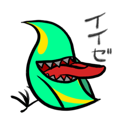 スタンプ説明 黄緑色のお化け鳥スタンプ。可愛がって下さいね。