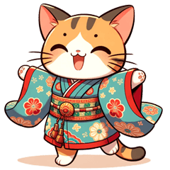スタンプ説明 着物をまとう愛らしい猫たちが日常を彩ります。感情豊かな表情で、あなたのメッセージを特別なものに。