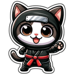 スタンプ説明 忍者の格好をしたかわいいネコで会話に忍び寄る楽しさを!遊び心を表現するのに最適です。
