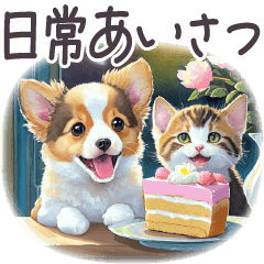スタンプ説明 フランスをイメージした背景のパステルのやさしいスタンプ。毎日使えるフレーズが便利。敬語/丁寧/連絡/あいさつ/子猫/猫/ねこ/犬/子犬/いぬ/ひよこ/うさぎ/いちご