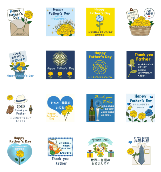 大人可愛い丁寧な父の日のスタンプです。 (お父さん/父/パパ/義父/お義父さん/ありがとう/感謝/毎年使える/大好き/黄色いバラ/Happy/6月/感謝の気持ち/父の日)