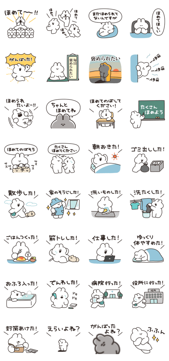 褒められたいうさぎのスタンプです。