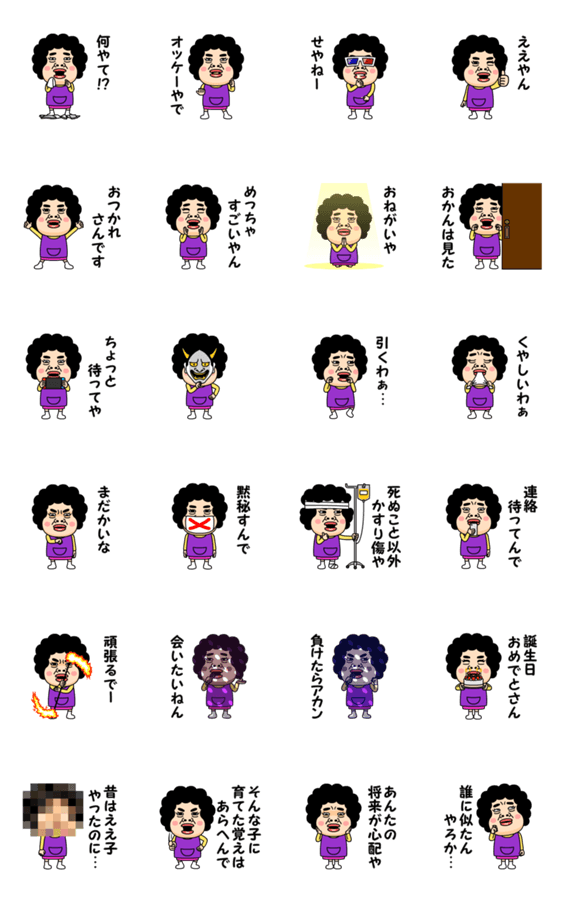おかんからのビデオメッセージの第三弾!パーマにエプロン姿の典型的なオバサンスタイル!母の名言や格言多め♪芋ジャージの名前スタンプの『くーが』作