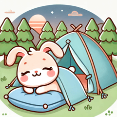 スタンプ名 キャンプを楽しむちびキャラうさぎ