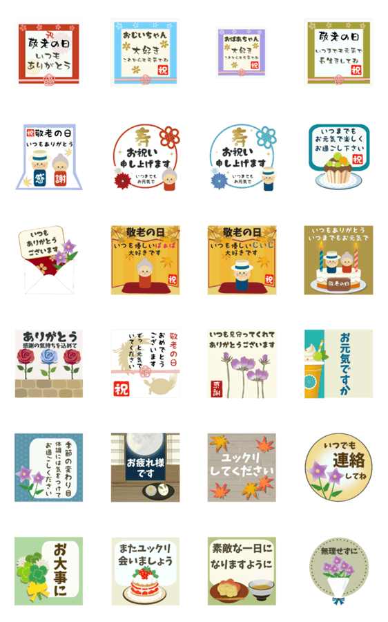 大好きなおじいちゃん、おばあちゃんへ (じいじ/ばあば/祖父/祖母/お祝い/おめでとう/ありがとう/感謝/気遣い/挨拶/ずっと使える/優しい気持ち//敬老の日/感情を伝える)