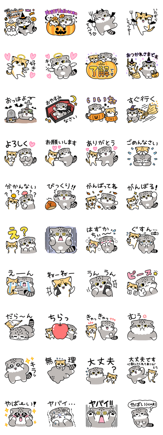 ゆるかわなマヌルネコ「ゆるっとマヌルちゃん」のスタンプ17作目はハロウィンに使えるスタンプです