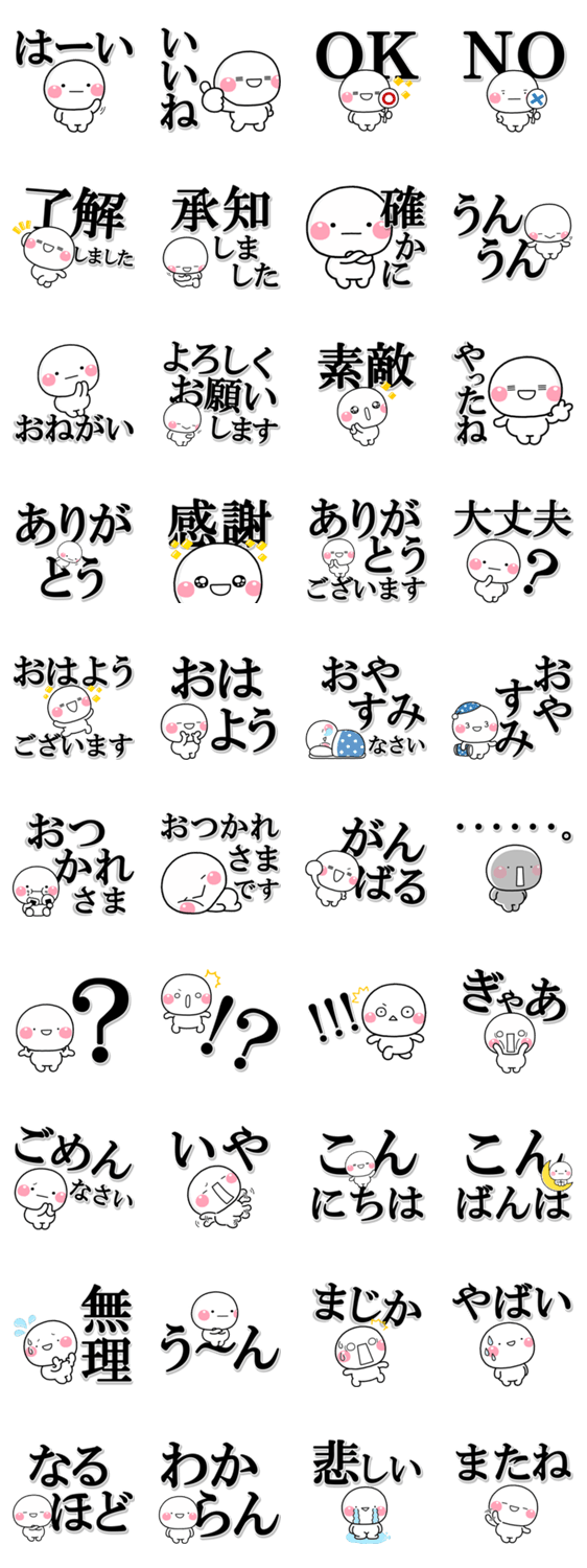 大きい文字で誰でも見やすく、毎日使えるしろまるを添えたスタンプです。使用頻度が高いもののみ厳選しているので、初心者の方にもオススメです。【作:いしいともこ】