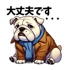 スタンプ説明 いろんな服を着たおしゃれなブルドッグたち。