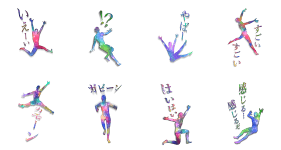 トーク画面に大きく表示されるキラキラ★ギャラクシー人間 リアクション大げさにいっとこ~! つかみが大事?笑える!おもしろスタンプ特集! ※このスタンプはトークルームで大きく表示されるBIGスタンプです。