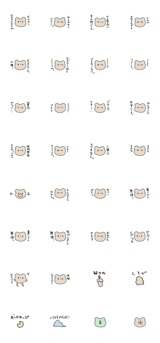 表情筋のないかわいいくまのかたちをしたスタンプです。
