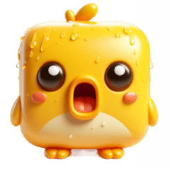 スタンプ説明 "四角いヒヨコ、妄想、ぼんやり、考え事、面白い、ユーモア、かわいい、動物、表情、LINEスタンプ、コミュニケーション、
