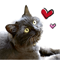 スタンプ説明 長毛の黒猫です。モフモフしたい方におすすめ。冬毛とサマーカットの違いも是非ご堪能ください。