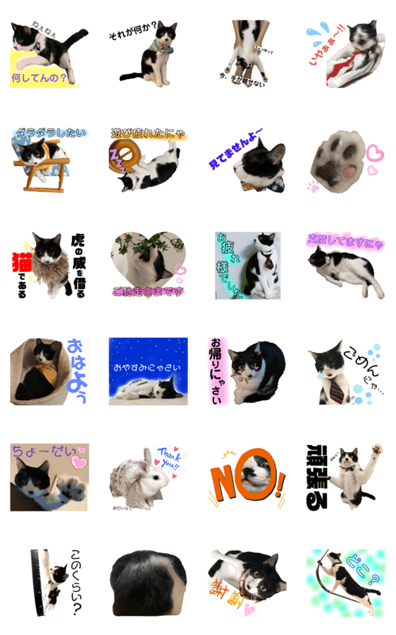 我が家の保護猫モナ(最中)のスタンプです。ハチワレ猫、鍵しっぽ好きさんいらっしゃい♫たまにうさぎの大福さん。