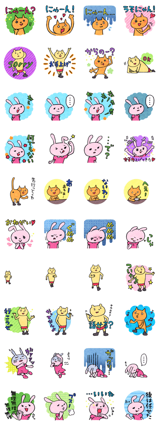 スタンプ説明 挑発的なネコと、計算高いウサギと、イケメンクマ