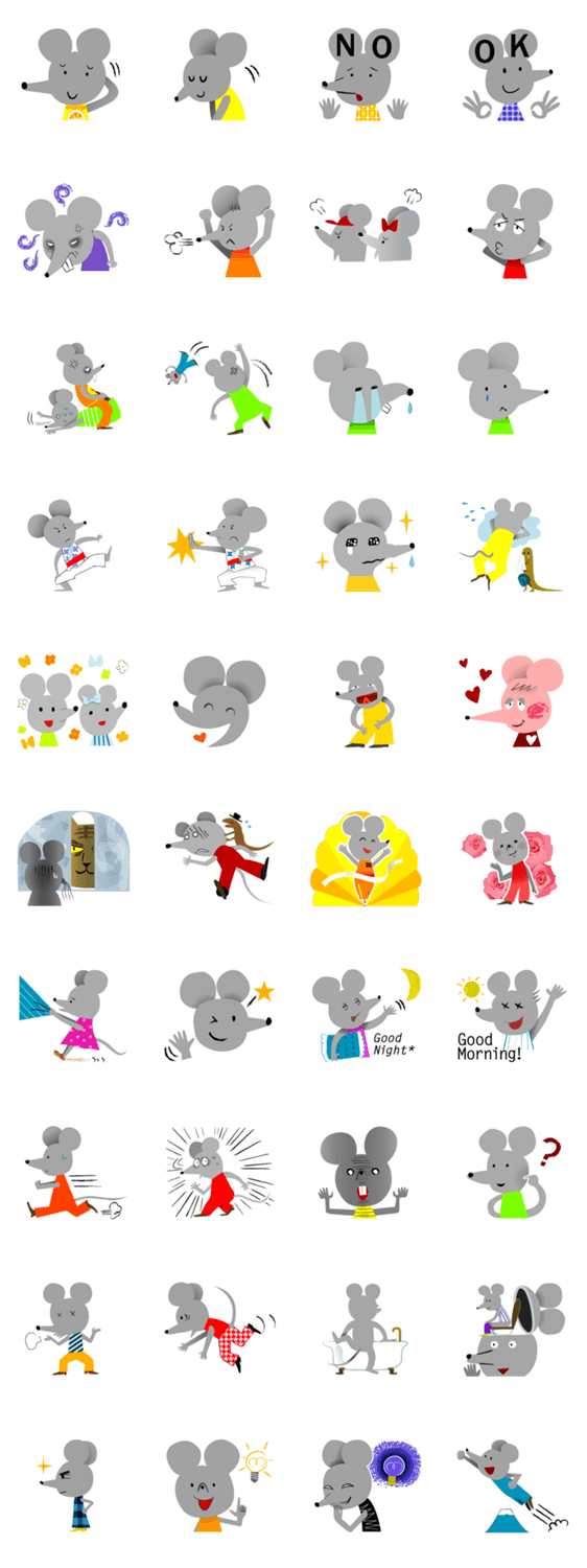 スタンプ説明 愉快なねずみたちが、表情豊かに気持を表現します