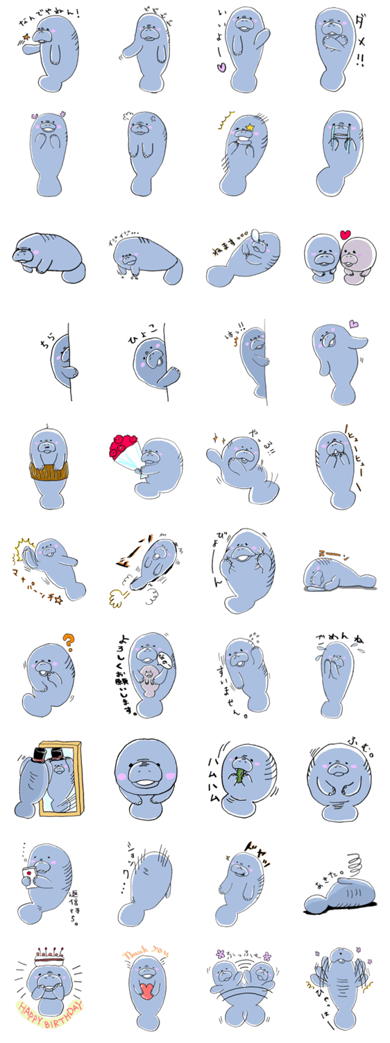 スタンプ説明 ゆるくてのんびりとした性格の人懐っこいマナティのスタンプです。